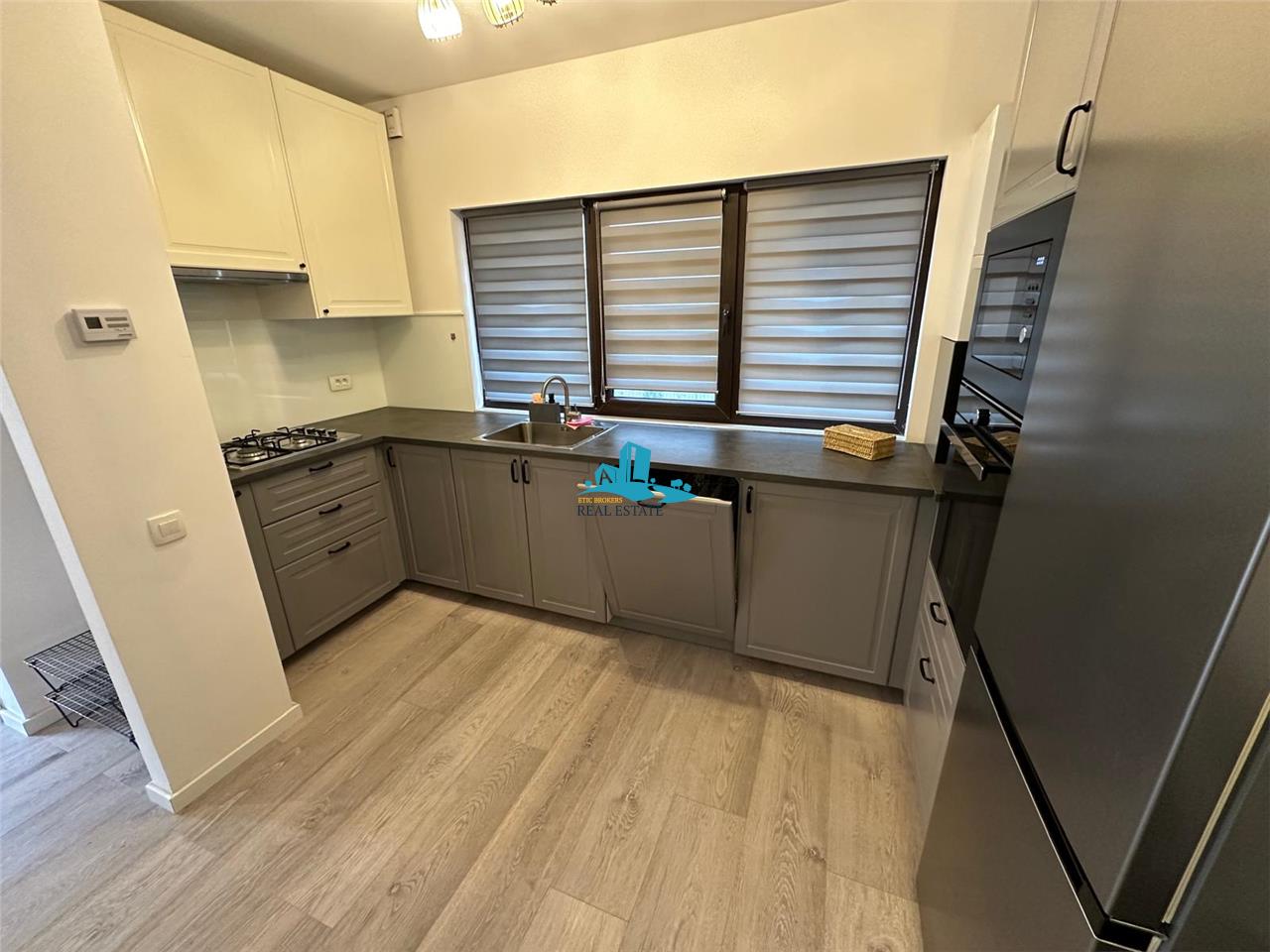 Va propunem spre inchiriere un duplex in vila, cu 2 camere, decomandat, confort lux, situat in cartierul Bucurestii Noi, la 100m de gura de metrou Laminorului, intr-un imobil construit in anul 2023 , disponibil in vila (bucatarie, o baie si living la parter, iar la etaj dormitor, a doua baie si un dressing), cu o suprafata de 75 mp totali (65m in interiorul apartamentului plus 10mp balcon).